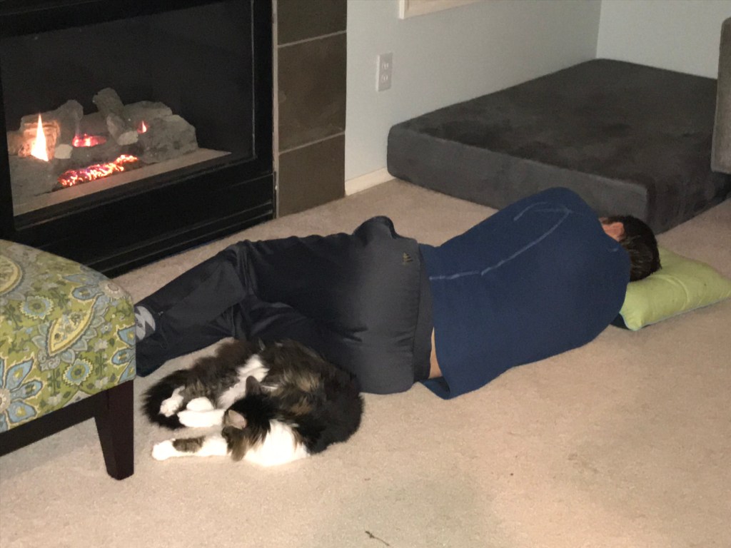After the MRI (and 2 sedatives), Matt was legally and medically stoned and declined the invitation to attend that night’s prayer and worship gathering at church and promptly fell asleep in front of the fire place.